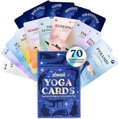 Zinsk 70 Premium Yoga Cards – Pose Flashcards with Beginner Instructions, Difficulty Levels, and Sequences – Deepen Your Practice with Alignment Cues, Modifications, Sanskrit Names & 10 Intentions