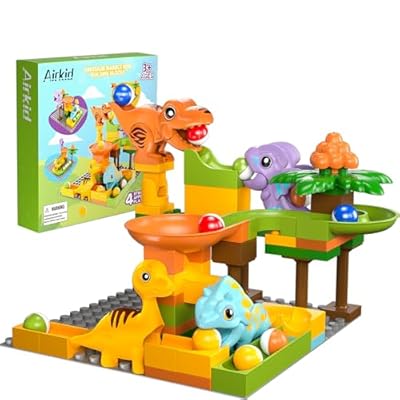 Airkid Marble Runs for Kids 4-8,Marble Run for Kids Ages 3-5 with Dinosaur Building Blocks,Dinosaur Toys,STEM Building Toys with 4 Marble Track Compatible with Major Brands